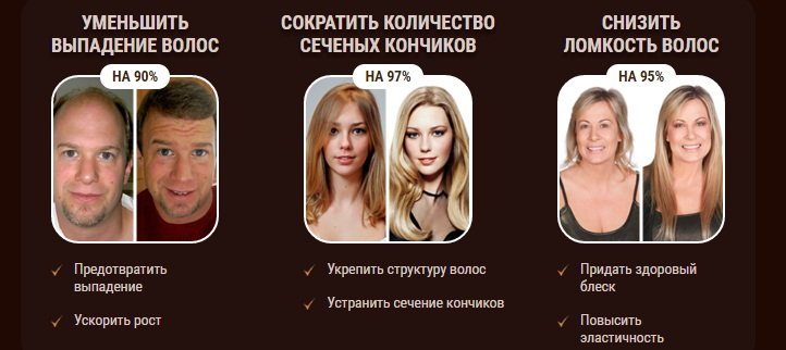 - 86% пользователей смогли отрастить волосы минимум на 3 см (данные за месяц использования).