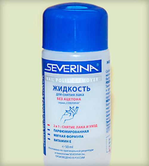 Severina — это популярный отечественный производитель косметических средств для ногтей, который выпускает качественное средство для снятия гель-лака. При помощи препарата можно без труда удалить покрытие клипсы или естественной ногтевой пластины без риска навредить ногтю. Огромным плюсом является стоимость продукта в соотношении со степенью эффективности и объемом, ведь можно встретить флакончики емкостью до 500 миллилитров. Единственное нарекание в отношении продукта от Северина – это флакон, не имеющий дозатора, что затрудняет процесс снятия лака. Однако в состав средства входит огромное количество разнообразных масел и витаминных комплексов, которые делают процесс удаления лаковой основы относительно безопасным.