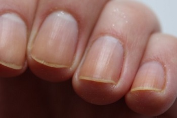 Вогнутая центральная часть ногтя часто означает нехватку железа. Точечные ямки в большом количестве появляются при псориазе. Продольные полоски – это сбои в работе кишечника, поперечные – скорее всего инфекционные заболевания (оспа, корь, краснуха).