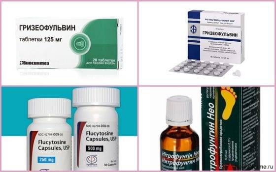 Лекарства от грибка ногтей на ногах могут относиться и к другим химическим группам. Они также эффективны при поражении пластин. Позволяют бороться с онихомикозом на начальной и средней стадии. Чаще всего используют Гризеофульвин, Флуцитозин, Нитрофунгин.