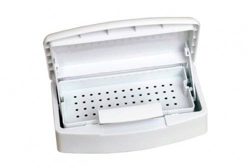Фрезы должны дезинфицироваться отдельно от ручных инструментов. Для этого используется особая емкость с вставкой-ситом.