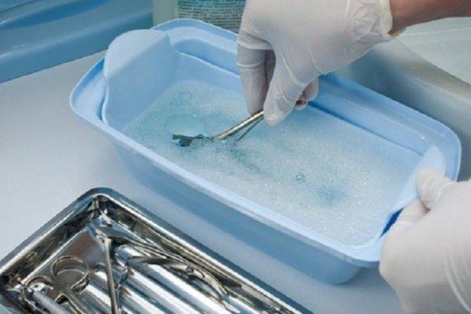 После обработки инструментов химическими средствами или антисептиком необходимо их промыть под проточной водой, кроме средств, которые этого не требуют.