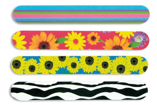 Плюсом этих пилок будет наличие двустороннего абразивного покрытия, а также разнообразие, яркость дизайнерского исполнения и небольшая стоимость. Можно порекомендовать одну из таких моделей — пилку для ногтей Фиолетовую с абразивностью 180х240. Маникюр, выполненный этим инструментом, будет более бюджетным.