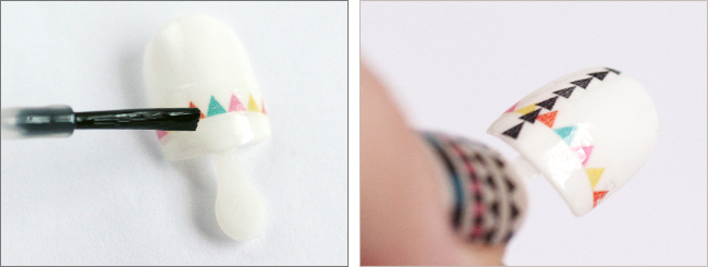 Нанесите верхнее покрытие. Особенно тщательно проработайте торец ногтя: чем лучше он запечатан, тем меньше шансов, что слайдер отклеится.