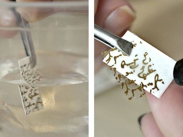 Слайдер сделан по тому же принципу, что и переводные татуировки: рисунок прикреплен к бумажной основе-подложке. Чтобы отделить пленку с узором, его нужно намочить.