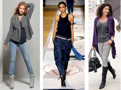 Приветствуется создание А-силуэтов, когда выбирают брюки средней ширины, классические джинсы, удобную обувь с невысокими каблуками.