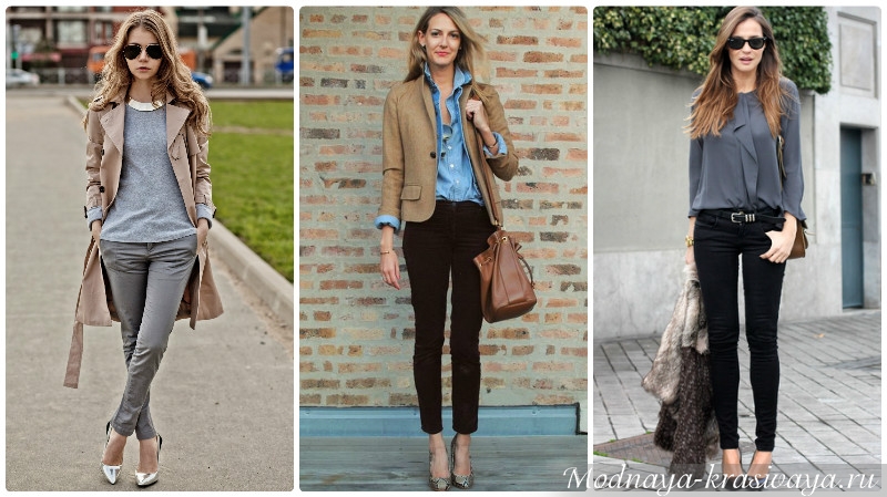 - джинсы – хотя бы 2-3 пары. По цвету это может быть классический деним и темно-серые, а по фасону — обычные бойфренды, скинни, бананы;