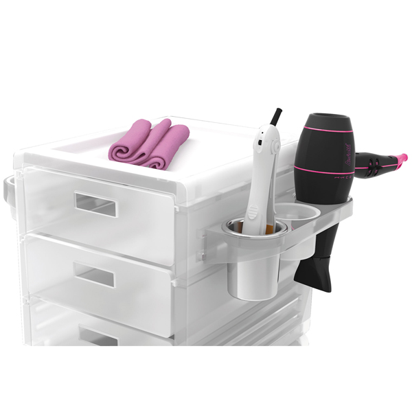 - Тележка – представляет собой тумбу на колесиках, внутри которой необходимо размещать предметы для стрижки, причесок, электрическое оборудование: фены, плойки, средства для завивки;
