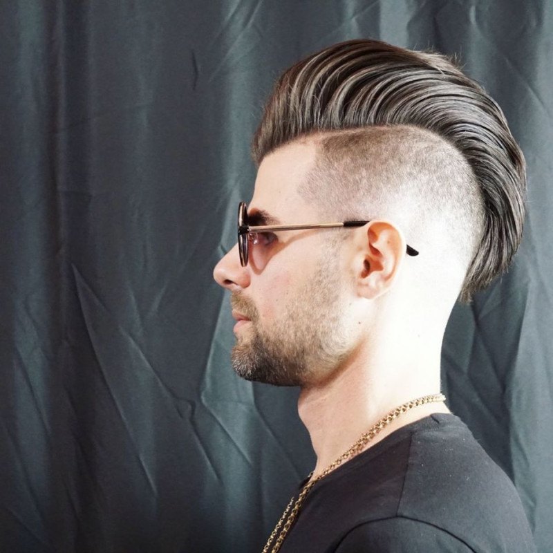 Классический. Это те самые выбритые виски и затылок, которые контрастируют с длинными передними волосами. Иногда эту разновидность называют ретро, в память о богатой истории стрижки. Волосы можно укладывать на один бок или делать зачес назад.