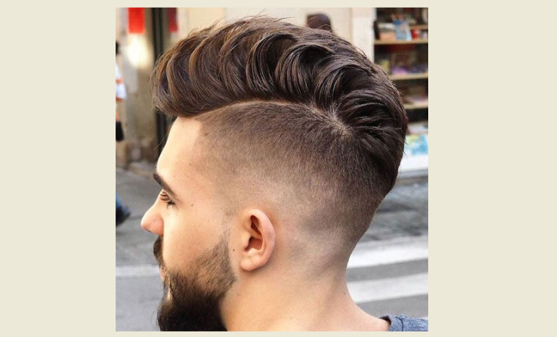 Вариант «помпадур» подойдет творческим мужчинам, которые не боятся быть в центре внимания. Модный брутальный образ получается от сочетания удлиненного андерката с густой бородой.