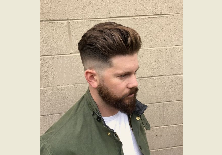 Вариант «помпадур» подойдет творческим мужчинам, которые не боятся быть в центре внимания. Модный брутальный образ получается от сочетания удлиненного андерката с густой бородой.