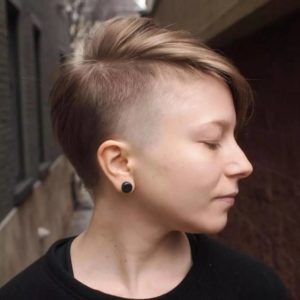 Многие звезды мирового кино выбрали для себя именно undercut (дословный перевод с английского «вырезка», «низ + резать»). Ассиметричные локоны стригутся с четким переходом, техника исполнения полностью идентична мужской.