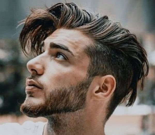 Удлиненные верхние пряди зачесываются на бок. Эта версия мужской прически выглядит творческой и интересной, добавляет образу дерзости и уверенности. Для легкой укладки лучше всего оставлять макушку длиной от 5 см.
