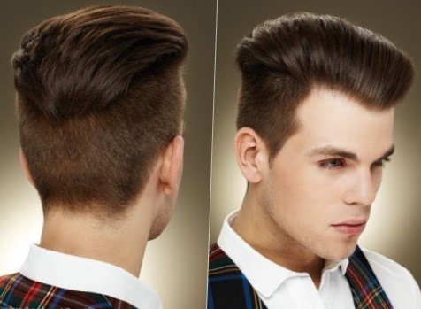Помпадур – удлиненная версия стрижки. Его лучше выбирать тем, кто расположен постоянно ухаживать за волосами. Пряди сверху делают длинными – до 15 см. Как правило, их зачесывают назад или оставляют спадающими вперед. Так получается сильный контраст между выбритыми висками и затылком и удлиненной макушкой. Для создания хорошего объема используют мусс или специальную помаду для укладки.