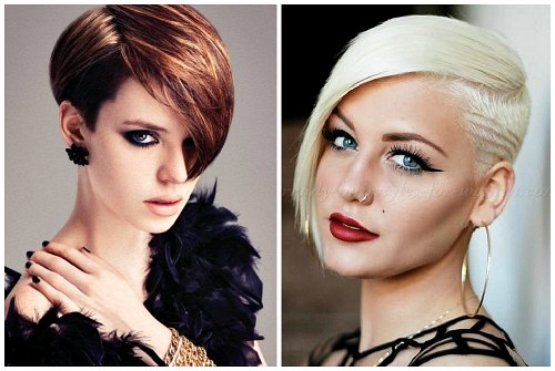 - Асимметрия с выбритыми висками или с зачёсом длинных прядей на одну сторону подойдут для дам с узким, худощавым, треугольным лицом.