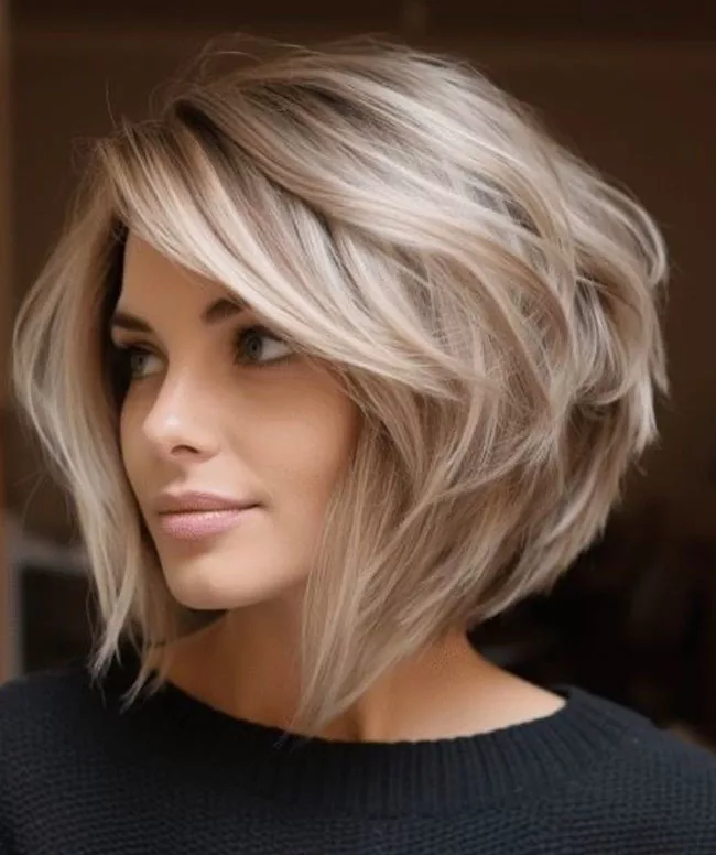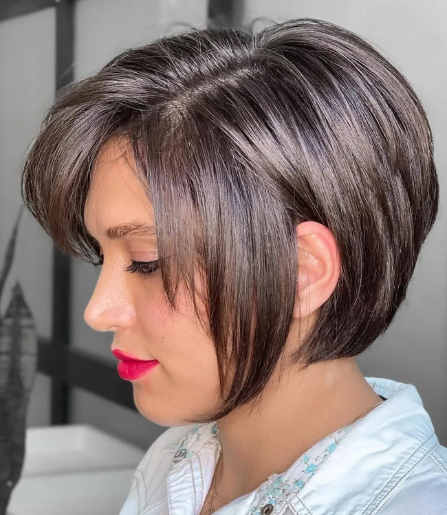 Короткий боб подойдет женщине в том случае, если волосы густые, блестящие. Лучше выбирать многослойный способ стрижки волос, чтобы придать прическе объемность. Филирование и градуирование кончиков позволят создать красивый контур, а текстурирование добавит мягкости, пышности.