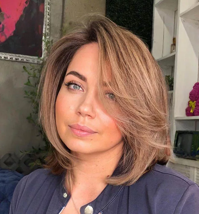 Включает в себя челку, которая может быть разной длины и формы. В тренде прямая, закругленная или плавно переходящая в боковые пряди шторка. Челка добавляет обрамление лицу и усиливает стиль прически.