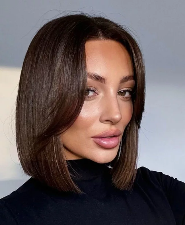 При помощи короткого прямо боба удается сделать лицо длиннее, так как необходимо использовать прическу для девушки с круглым лицом.