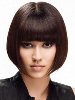 Эта стрижка отличается наличием четких линий. Суть прически в том, что длинная челка совпадает с длиной передних волос. Такой вариант стоит присмотреть девушкам с круглой формой лица. А вот как будет выглядеть на фото стрижка удлиненный боб, можно увидеть в данной статье.