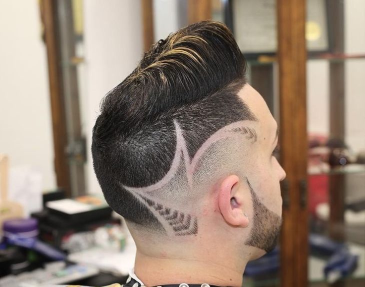 - Рисунок на затылке. Наиболее популярен у подростков летом и молодежи. Узоры могут варьироваться от простых линий до сложных композиций.