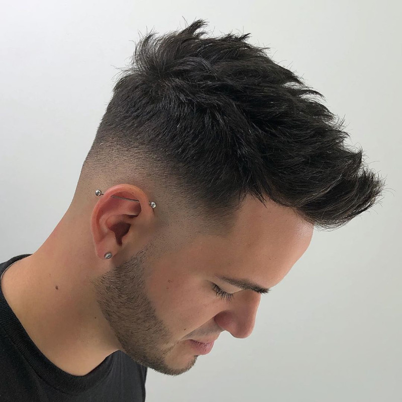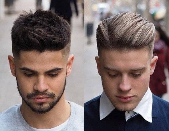 Мужские стрижки на короткие волосы. В отличие от спортивной версии переход длины более подчеркнут. Челка может быть на бок. Укладки не требует, но с ней смотрится эффектно.