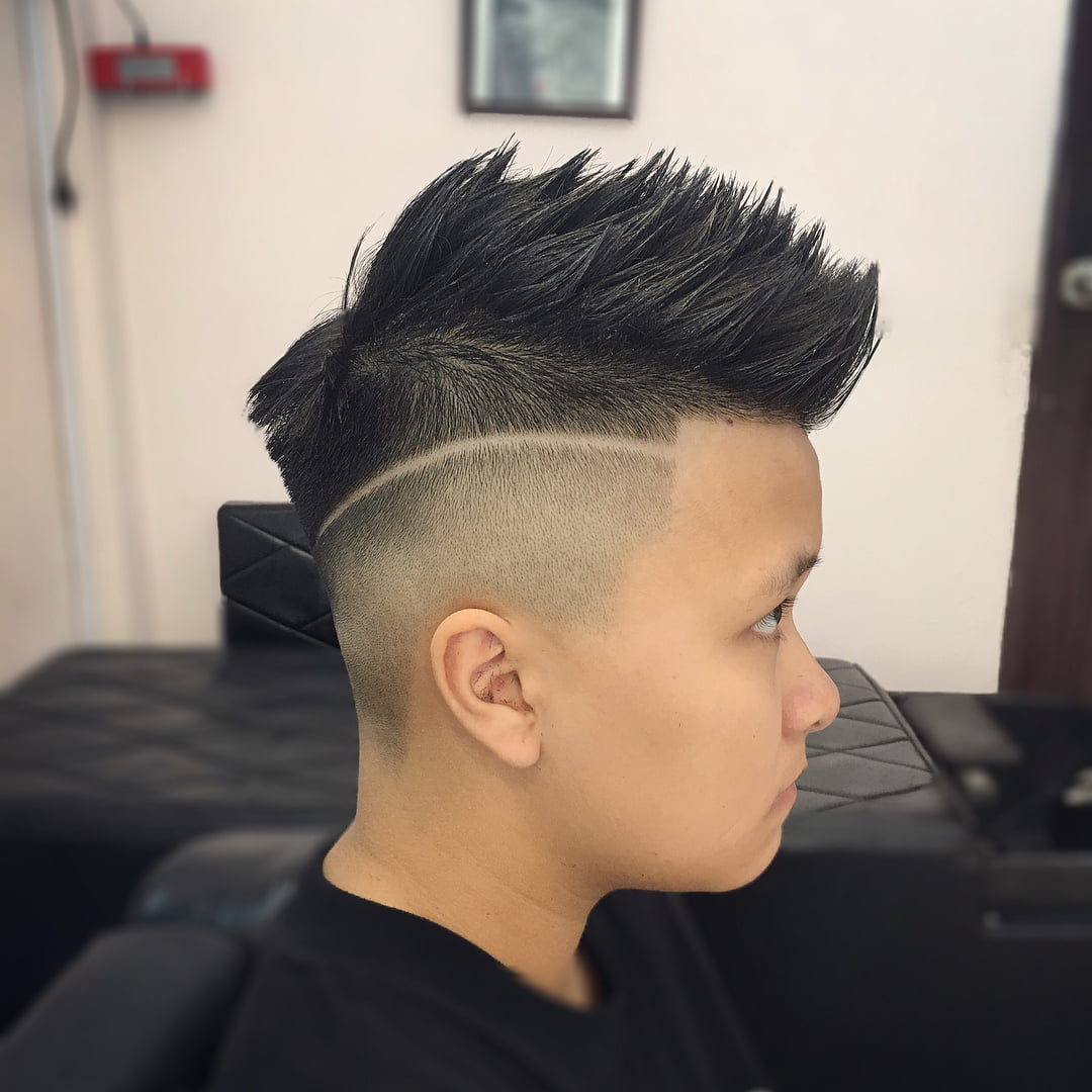 Короткие волосы на затылке и висках оставляют от 2 до 9 миллиметров. Длина верхних прядей варьирует от 5 до 10 сантиметров, мужчины могут поднять их вверх или зачесать набок.