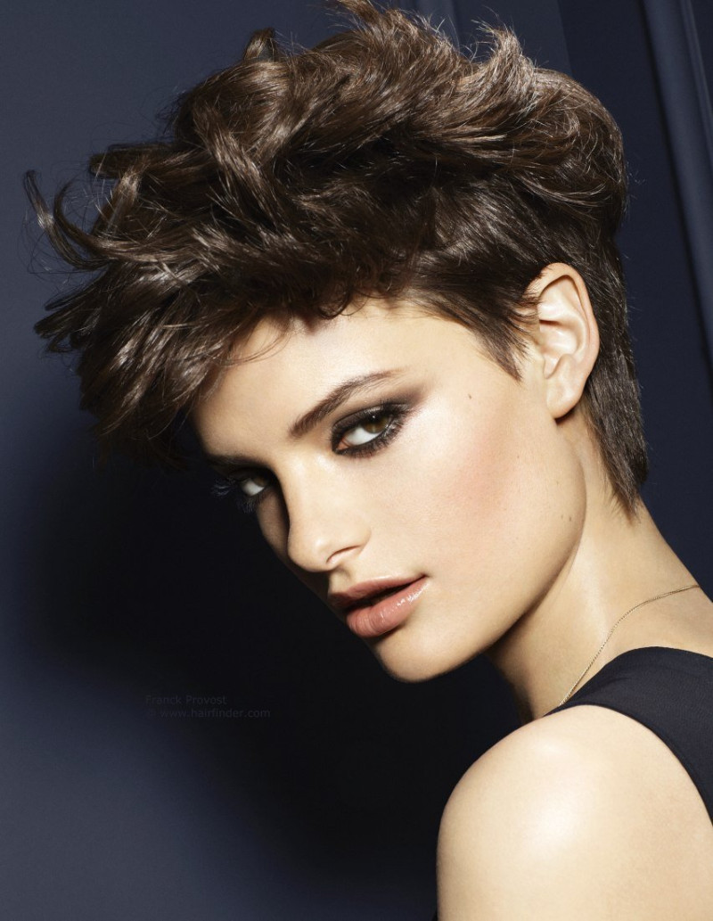 Стрижка «Гаврош» на короткие волосы рекомендована для юных девушек, т. к. подчеркивает игривый, бунтарский дух. Для этого локоны в области макушки коротко подрезают и делают неровную челку с переходом от короткой к длинной. Таким образом создают эффект небрежно торчащих в разные стороны прядей.