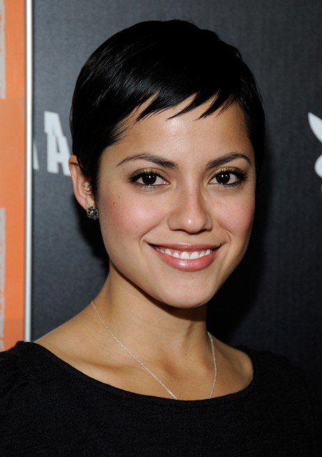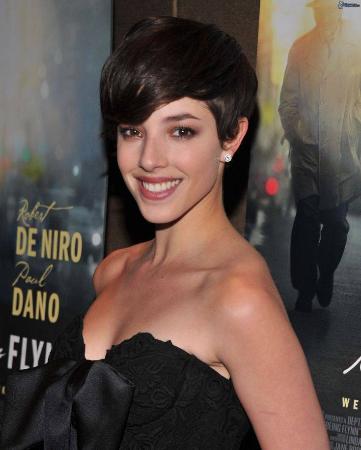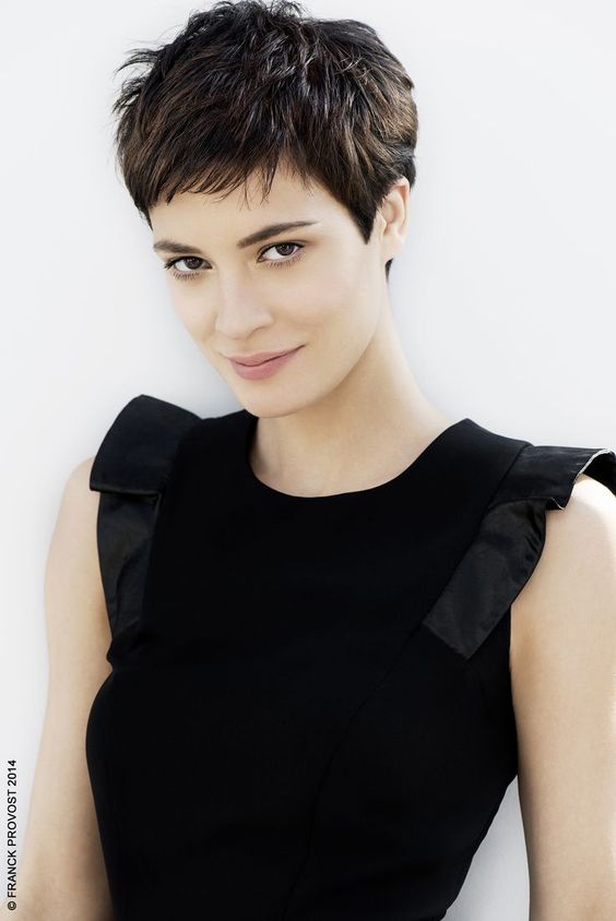 короткая стрижка, выполняется как на прямых, так и вьющихся локонах. Может иметь ровные, рваные срезы, основной объем в теменной области. Подходит стройным девушкам с правильной или вытянутой формой овала. Возможно скорректировать высокий лоб или угловатые скулы