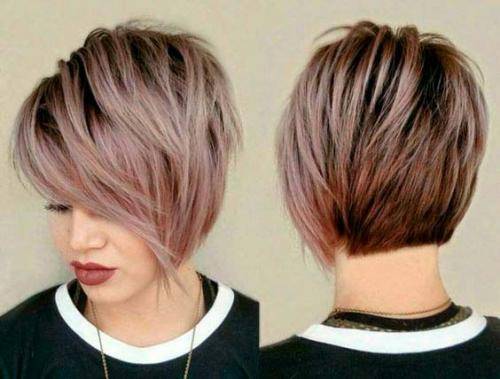 с выстриженной в асимметричном стиле челкой и удлиненными локонами на затылке (в т. ч. в сочетании с колорированием).