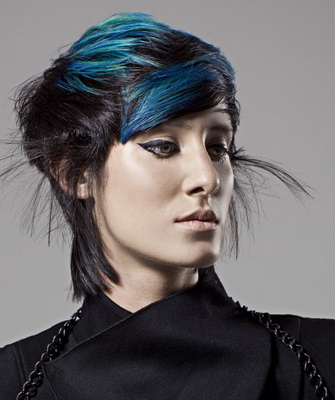Прекрасно смотрится на базе этой прически мелирование и окрашивание перышками, можно выделить другим цветом одну широкую прядь, например, косую челку.