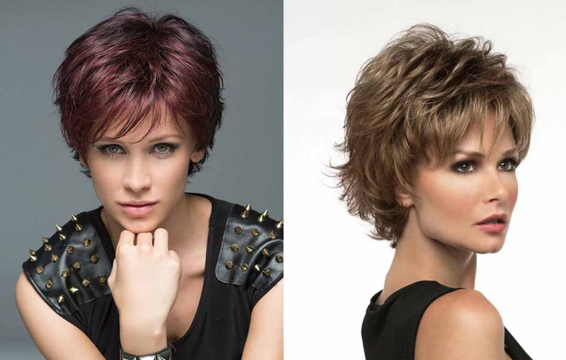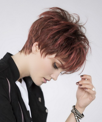 Каприз на короткие волосы укладывается с эффектом небрежных, взъерошенных прядей, торчащих в разные стороны. Получается оригинально и стильно. Используются и более классические способы: при укладке феном пряди подкручиваются внутрь или наружу.