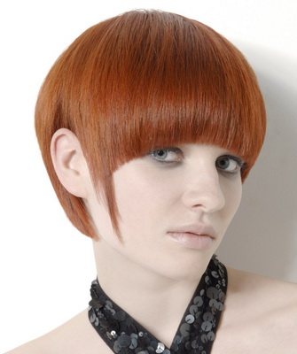 Характерный контур этой стрижки – гладкая, округлая линия окантовки. На макушке волосы должны иметь достаточную длину и объем, чуть ниже наблюдается плавный переход к коротким прядкам на теменной и височной области. В прическе полностью отсутствуют резкие перепады, острые углы, все линии должны быть мягкими. Обязательным атрибутом является густая челка.