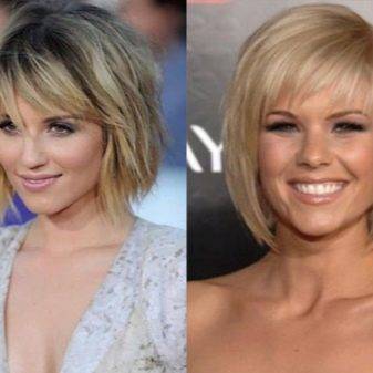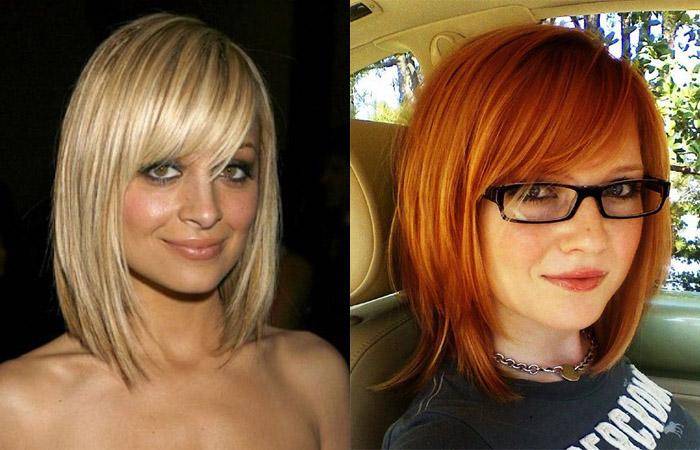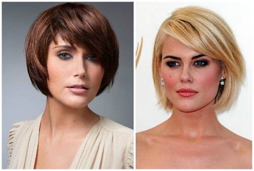 Овальное вытянутое или треугольное лицо уравновесит стрижка, закрывающая мочки ушей. Удлинение передних прядей недопустимо. Косую челку выполняют укороченной. Длина до скул считается оптимальной.
