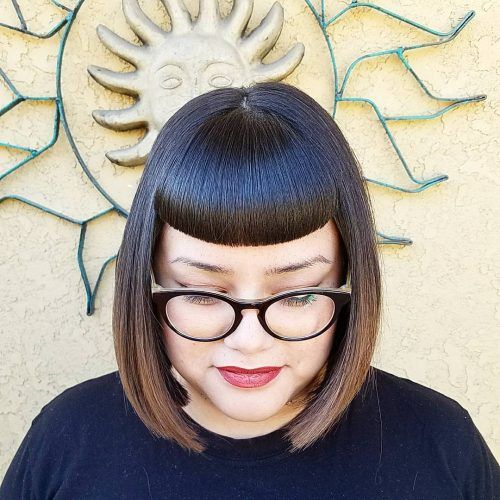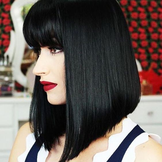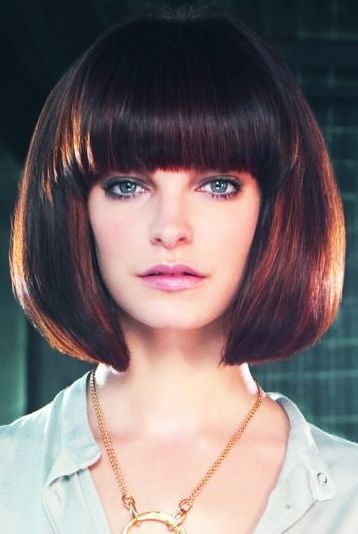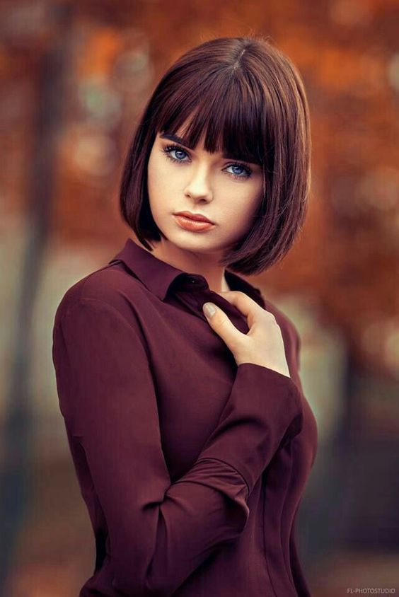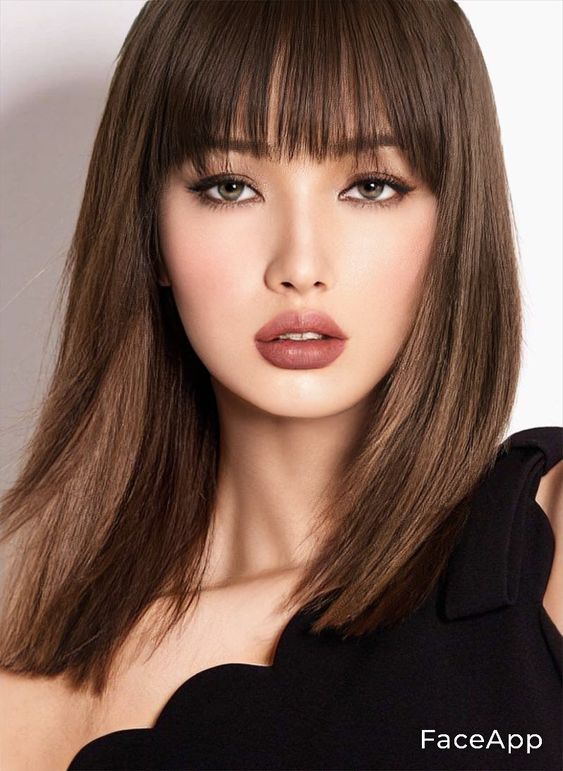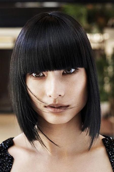 Классический срез подчеркнет симметричные черты лица. Ровная челка выигрышно сочетается с прямыми и гладкими волосами. Идеальная длина такой челки — почти доходящая до линии бровей.