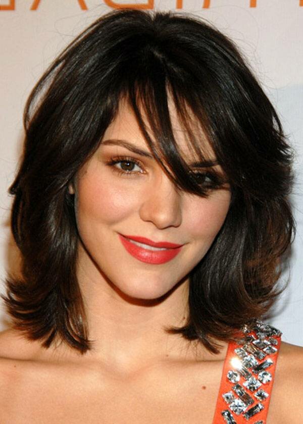 Градуированная стрижка отлично гармонирует как с ровной, так и с косой челкой, независимо от ее густоты.