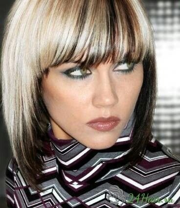 Каре на короткие волосы с косой чёлкой