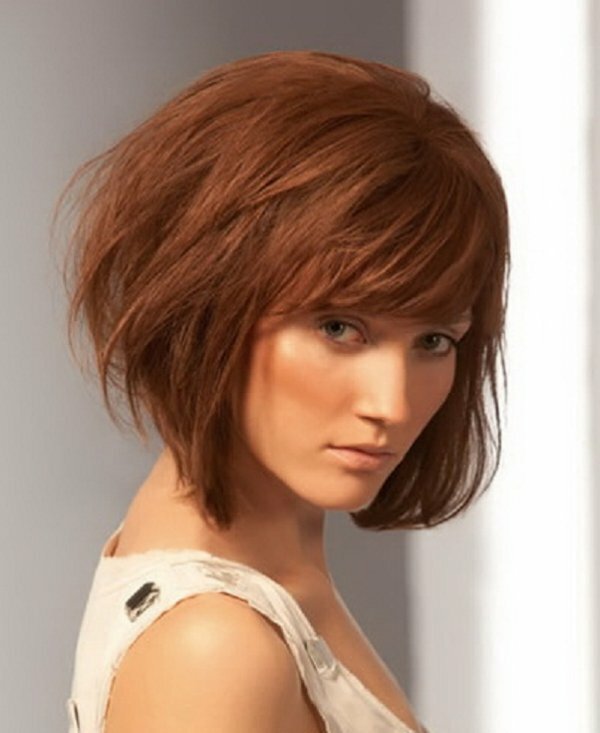 Фото градуированного каре с челкой на средние волосы для придания объема