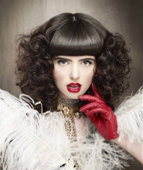 - Классические локоны при укладке выглядят эффектнее с прямой густой или редкой челкой.
