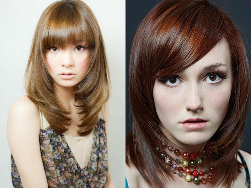 Стрижка каскад с челкой – это классический вариант. При этом сама челка может быть различной длины. Особенно интересно смотрится, когда она очень короткая. Для придания более женственного и таинственного образа лучше выбирать удлиненную челку. К еще одному стильному варианту относится стрижка каскад на средние волосы с косой челкой, которая подходит абсолютно любому типу лица. К тому же косая челка может скрывать угловатость, подчеркнет индивидуальный образ и характер своей обладательницы. Такая челка может существовать самостоятельно или же уходить в саму прическу.