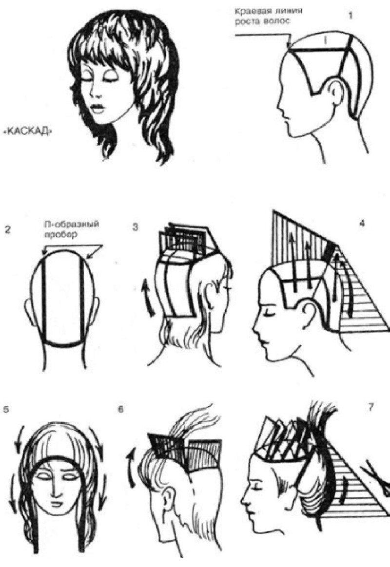 Каскадную стрижку можно стричь двумя способами. Классическая техника предполагает следующие этапы:
