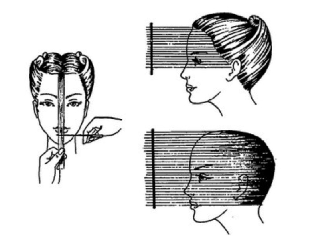 - Одну прядь отделяют на макушке и стригут мальчиком параллельно полу, задав длину всей стрижки — контрольной.
