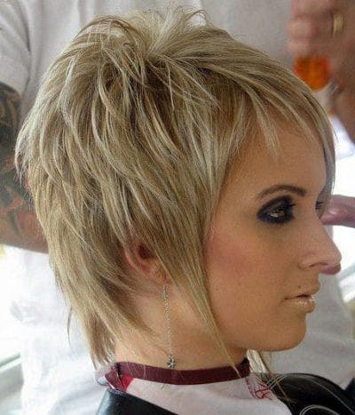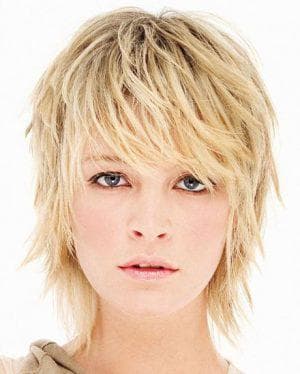 Его особенностью является стрижка прядей «под угол» или «перышком» при этом прядки на одном уровне имеют несколько разную длину. На коротких волосах такая модель выглядит совершенно очаровательно.