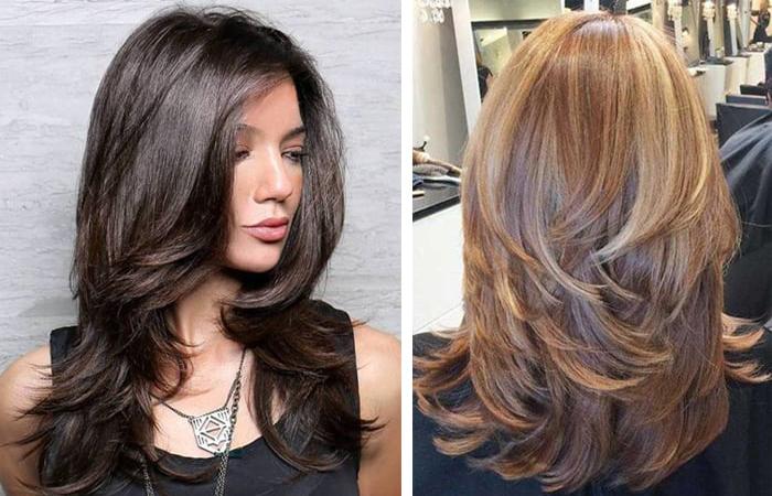 Каскадная прическа без челки на длинные волосы отличается большим выбором. Среди них можно выбрать вид перевернутой V с небольшой разницей в длине между верхними и нижними прядями. Стрижка будет похожа на лестницу и подойдет для консервативных натур. При этом волосы потеряют минимум длины и объема. А прическа будет отличаться более мягким разрезом.