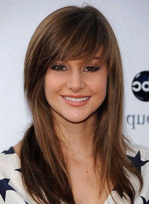 Челка в этой стрижке всегда приветствуется. Благодаря этому элементу лицо выглядит моложе и приветливее. Каскад на длинные волосы красиво смотрится с прямой челкой, когда волосы обрезаются обычными парикмахерскими ножницами. На фото показаны варианты с длиной этого элемента. Ее надо выбирать чуть больше запланированной, потому что волосы могут слегка приподняться после просушки.