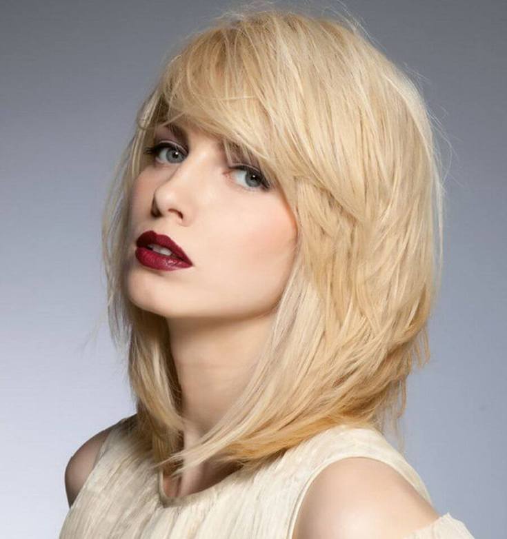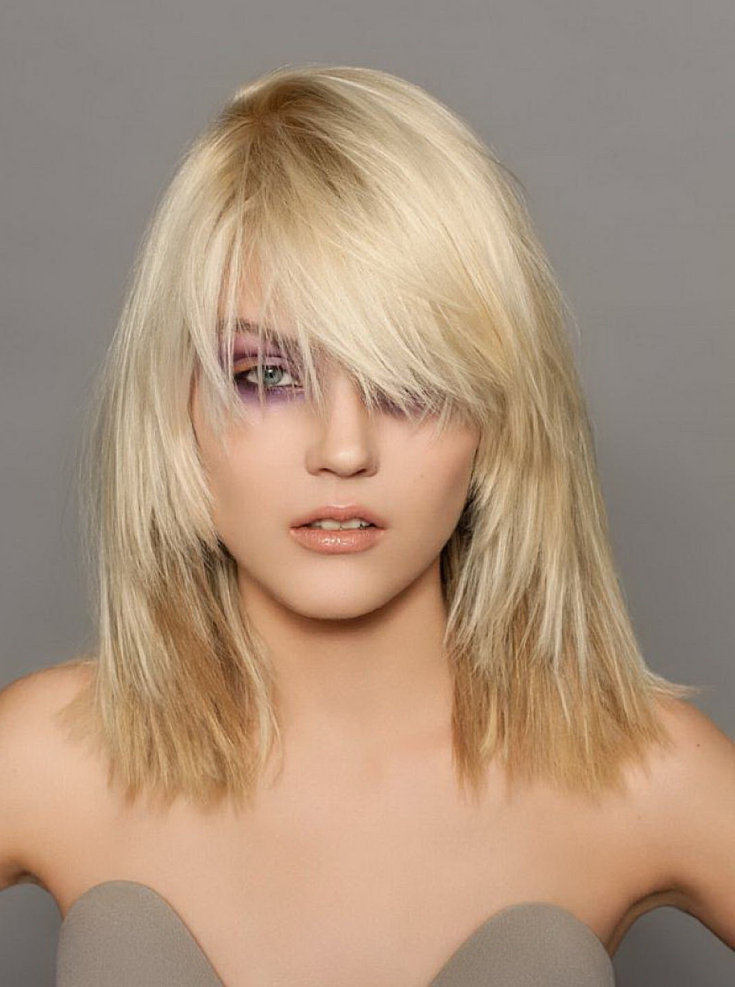 Практически все каскадные модели подходят для средних по длине волос, оживляя образ и придавая ему динамику.
