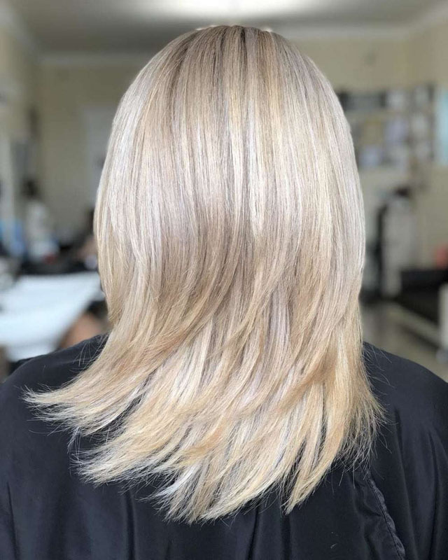Слои плавно перетекают друг в друга, в затылочной области получается хороший объем, а кончики прореживают для придания прическе воздушности.