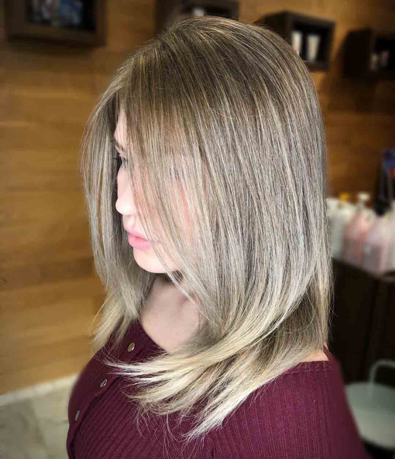 Чтобы чёлка сочеталась с причёской, верхняя часть «лестницы» должна начинаться с линии мочки уха. Плавный переход можно завершить с начальной точкой, которой будет чёлочка. Такой лук подойдёт для девушек с любой формой лица.