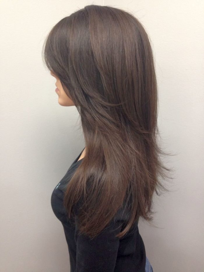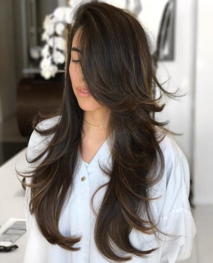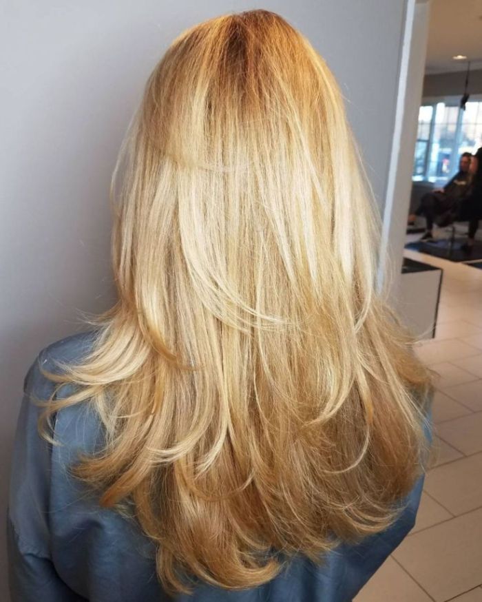 Хотите оригинальную прическу на длинные волосы? Это тебе. Это шикарная длинная многослойная прическа с бликами. Эти блики — естественный способ добавить цвета, не выглядя слишком очевидным. Многие предпочитают естественный вид оттенкам традиционного стиля. Слои дополнят вашу новую технику мелирования, и все ваши друзья будут завидовать вашим новым волосам.