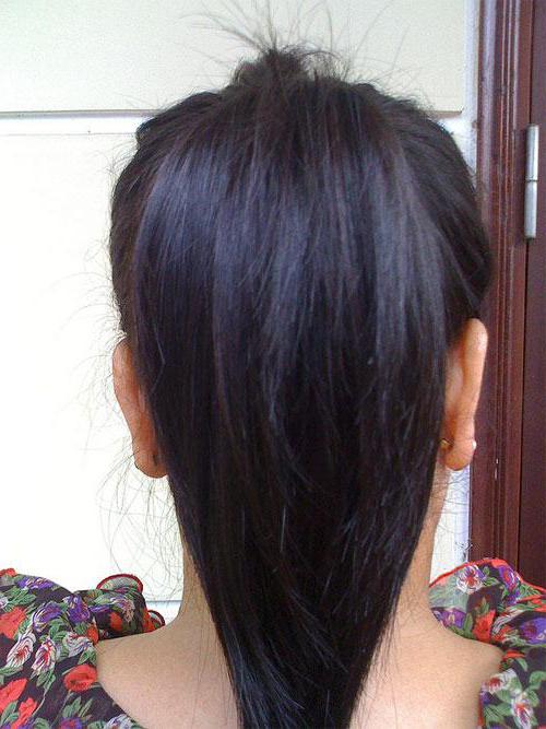 - В первом случае каскад стригут только на небольшом участке от кончиков волос, формируют V-образный клин сзади. Самые короткие пряди получаются по бокам.