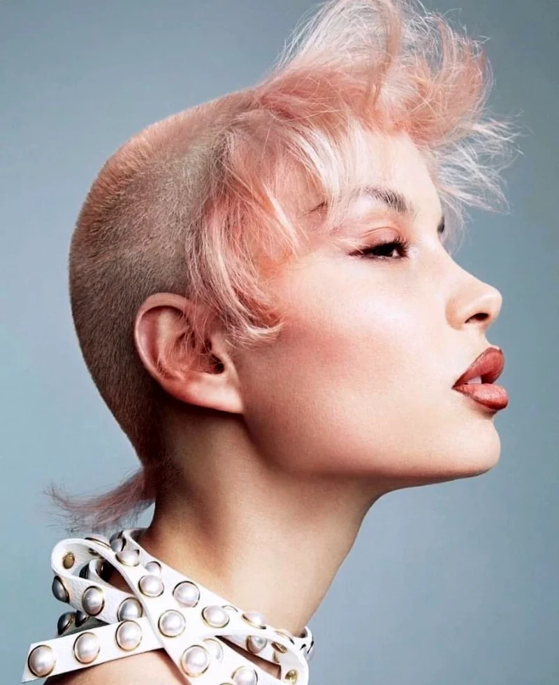 Самый экстраординарный вариант маллета, только самые смелые девушки готовы решиться на это. Но выглядит просто замечательно, уникально и необычно. Такая прическа точно способна выделить вас среди серой массы. Отлично сочетается с разного рода пирсингом.